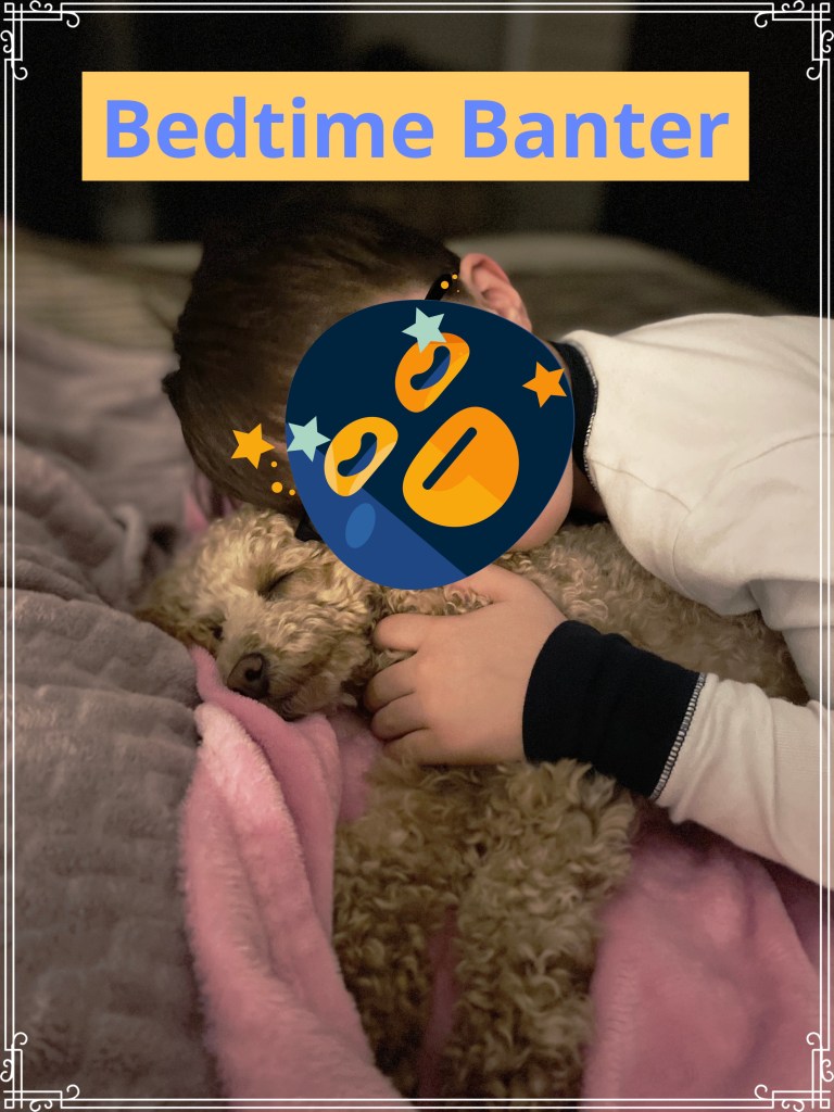 Mr. D: Goodnight, I love you, bye, sweet dreams see you tomorrow, bye. I hope you had a very nice day today and I hope you have a very nice day tomorrow, bye! (He repeats this phrase every night to each member of the family before bed, including Luna our dog!).